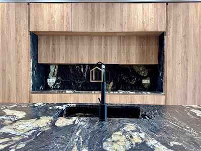 Cocina integrada en zona de recibo pero en distinto ambiente, de grandes dimensiones, con inmensa isla central y con espacio para comer a diario, con una reforma vanguardista y elegante, totalmente amueblada y equipada con electrodomésticos de alta gama y vinoteca.